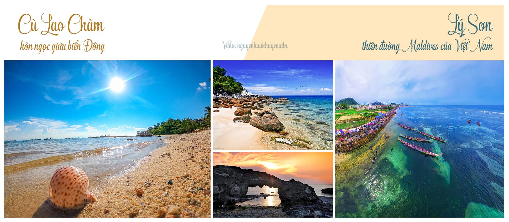 Nếu là người yêu cảnh sắc thiên nhiên thơ mộng, muốn tìm về với vách đá núi lửa kỳ thú, những đôi chim hải âu bay về tổ ấm hay hoàng hôn dát vàng sóng nước thì đảo Lý Sơn sẽ cho bạn những bức tranh khiến du khách bị mê hoặc. Còn nếu muốn tìm đến sự bình dị, hoang sơ, mộc mạc của 8 hòn đảo lớn nhỏ thì Cù Lao Chàm sẽ là điểm đến phù hợp với bạn qua những rạn san hô phong phú sắc màu, mang đến cho bạn sự khám phá thú vị và sự đa dạng sinh học nơi đây.