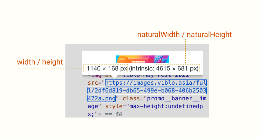 Trả về chiều rộng thực tế của một element. Là giá trị không bao giờ thay đổi. Ví dụ: 1 tấm hình rộng 100px luôn có width tự nhiên là 100px ngay cả khi image được thay đổi kích thước bằng CSS hoặc JavaScript.