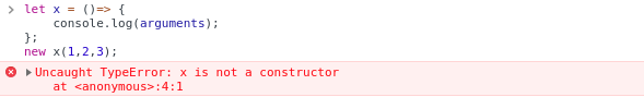Regular functions được tạo bằng cách sử dụng khai báo hàm hoặc biểu thức là constructible và callable. Vì regular function có thể constructible, chúng có thể được gọi bằng cách sử dụng từ khóa new. Tuy nhiên, arrow function thì chỉ là callable và không constructible. Do đó, chúng ta sẽ gặp lỗi khi cố gắng gọi arrow function bằng từ khóa new.