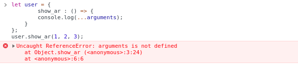 Chúng ta không thể sử dụng arguments trong arrow function, nhưng ở regular functions thì chúng ta có thể sử dụng được. Arguments objects là gì thì các bạn hãy xem lại ở đây.