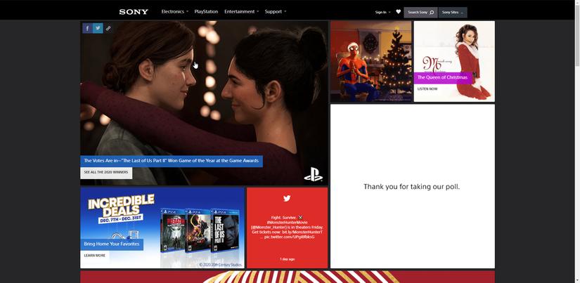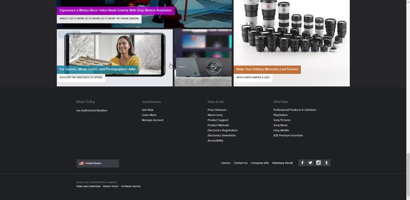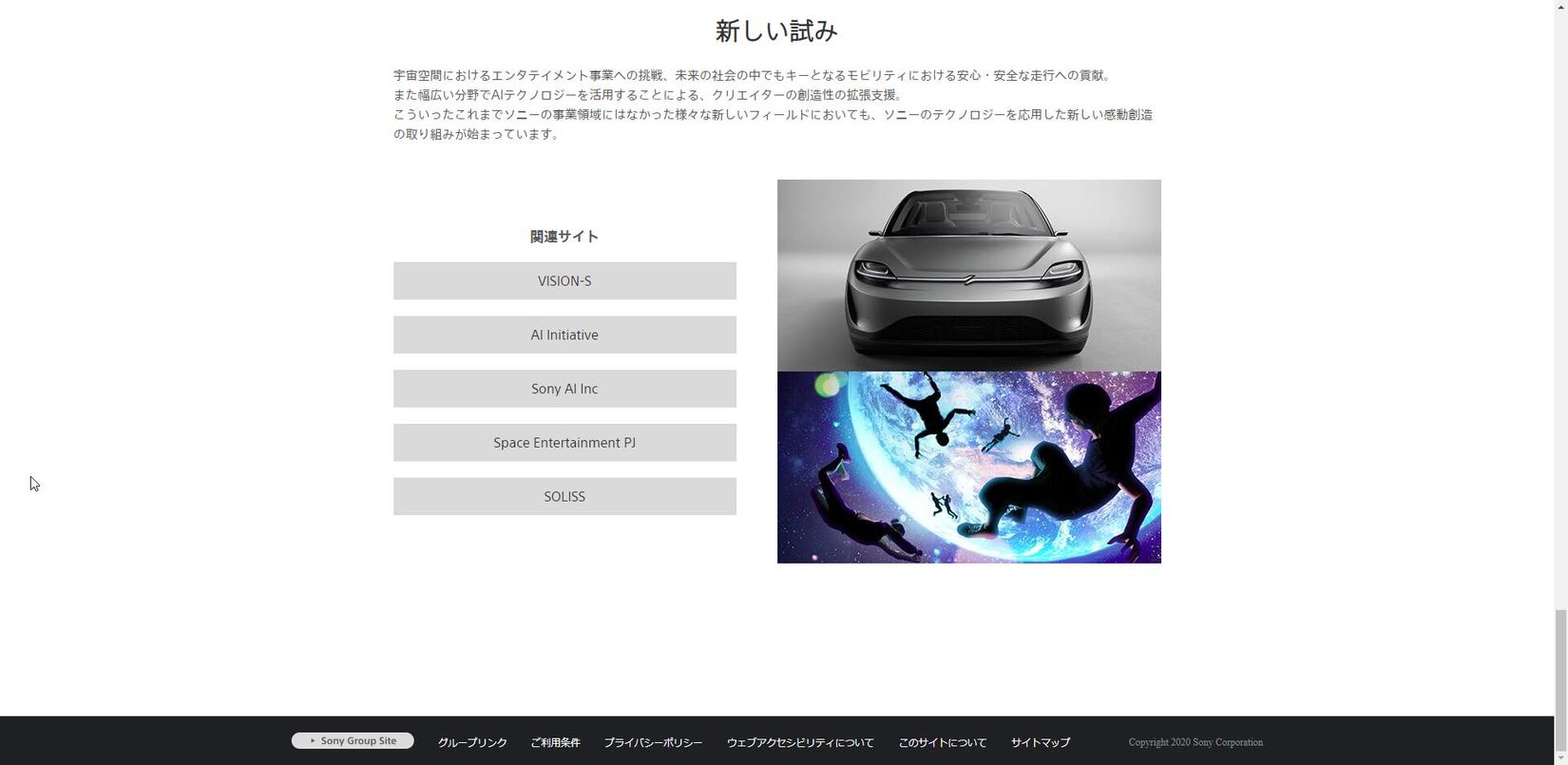 Trên trang web của Sony Japan, thanh tab nhóm “Sản phẩm” và “Dịch vụ” thành một tùy chọn (“Sản phẩm / Dịch vụ”). Khi nhấp vào tùy chọn “Sản phẩm / Dịch vụ” trên menu thả xuống, thanh điều hướng sẽ mở rộng thành nhiều danh mục khác nhau, chẳng hạn như “Phim” hoặc “Trò chơi & Dịch vụ mạng”. Tìm kiếm chuyển từ tìm kiếm chung sang tìm kiếm cụ thể hơn trên từng trang và đặt tốc độ tìm kiếm các sản phẩm cụ thể.