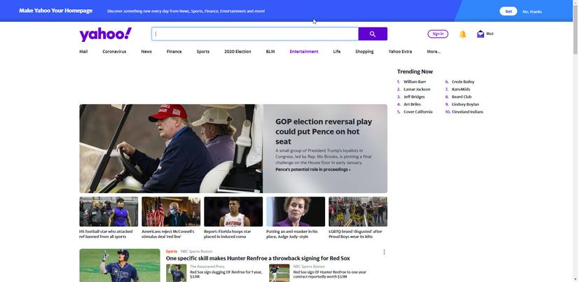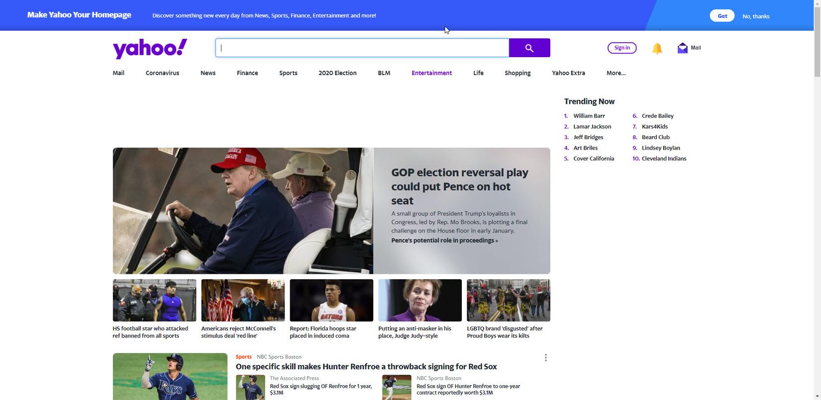 Mặt khác, bố cục cho Yahoo! ở Mỹ sử dụng khoảng trắng trong nỗ lực tách các phần thông tin với nhau. Chiến lược này sử dụng các quy mô thông tin khác nhau thông qua hình ảnh và kiểu chữ hạn chế vì người Mỹ có khoảng thời gian chú ý đọc ngắn . Nhìn vào hình ảnh trên, việc sử dụng kiểu chữ màu tím của thương hiệu tương phản trực quan với hình ảnh và nền trắng để hướng dẫn người dùng xem danh sách danh mục ở trên cùng.