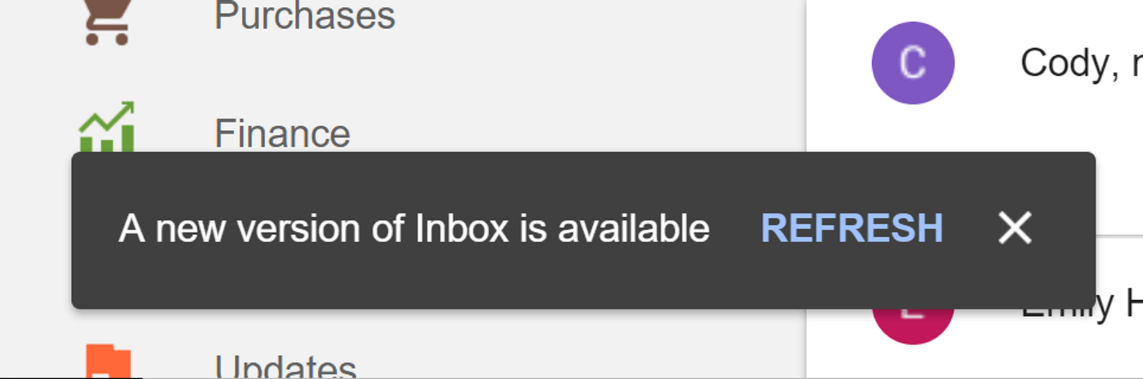 Bạn có thể thấy Gmail cũng đang hiện những thông báo như vậy khi có cập nhật:
