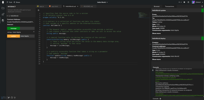 Lúc này trong phân Interact ta cũng có thể test giống như bên remix nhưng ở đây mình sẽ có thể xem luôn kết quả trên giao diện