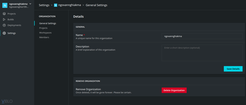 Superblocks thì được cấu trúc xung quanh khái niệm organization. Mỗi organization sẽ bao gồm một hoặc nhiều project (repo với smart contract) và cũng cho phép nhiều người tham gia một organization. Điều này giúp người dùng có thể bao quát được nhiều project và quản lý luôn những người được tham ra vào origanization. Trong phần setting bạn có thể thực hiện những tác vụ sau:
