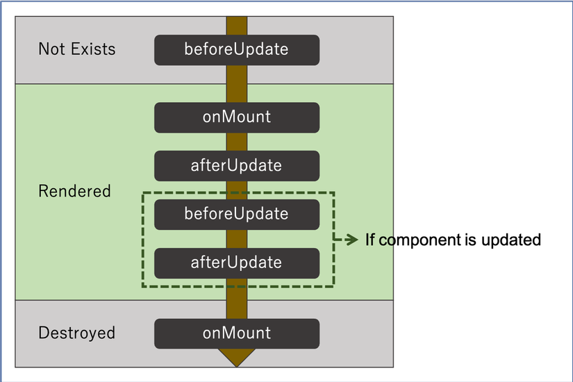 Sevelte hỗ trợ một số hàm cho lifecycle như sau: