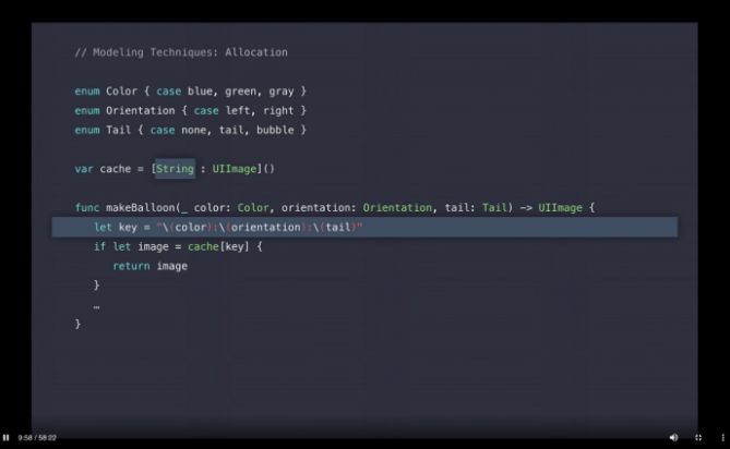 Nếu bạn không có cơ hội xem video WWDC của Apple, thì tôi sẽ thêm một ảnh chụp màn hình cho một ví dụ nữa, cách chúng tôi có thể cải thiện hiệu suất trong ứng dụng của mình. Ý tưởng là tránh tạo nhiều trường hợp kiểu tham chiếu: