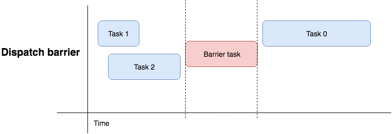 Ý tưởng chính của giải pháp này là sử dụng concurrent queue (với flag barrier) thay vì serial queue. Flag barrier đảm bảo rằng concurrent queue không thực thi bất kỳ task vụ nào trong khi đang thực thi barrier process, sau khi barrier process done, concurrent queue cho phép thực hiện các task vụ đồng thời khác: