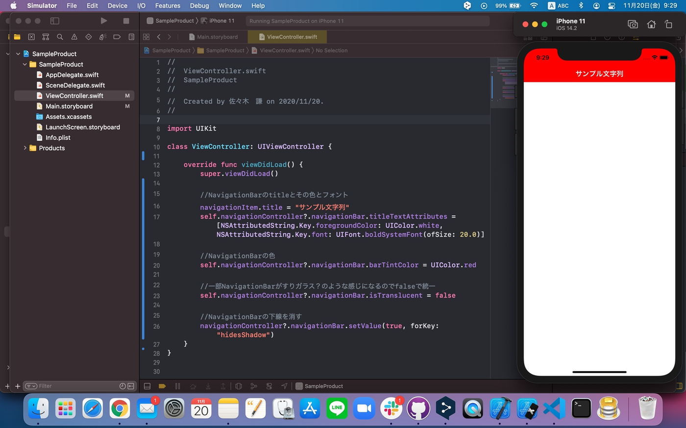 self.navigationController?.navigationBar.titleTextAttributes = [NSAttributedString.Key.foregroundColor: UIColor.white, NSAttributedString.Key.font: UIFont.boldSystemFont(ofSize: 20.0)]