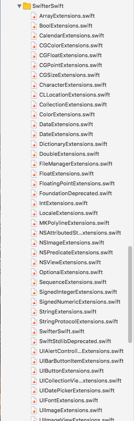 Ghen tỵ tiếp theo là SwitfterSwift là tổng hợp Extensions khá đầy đủ. Nó bao gồm 62 files tương ứng với 62 đối tượng khác nhau.