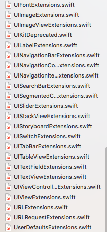 Qua nhiều năm làm việc tôi đã có một folder Extensions với số lượng file khá lớn, cho đủ các đối tượng khác nhau. NSLayoutContraints, UILabel, UIButton, UIColor, UIView ......