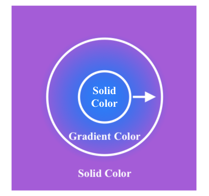 Nhìn vào hình ảnh dưới đây, bán kính bắt đầu bắt đầu từ vòng tròn bên trong và kết thúc ở vòng tròn bên ngoài. Giữa vòng tròn bên trong và bên ngoài, đó là nơi bắt đầu gradient.