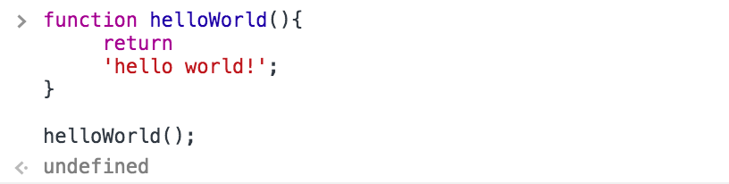 Trong đoạn mã dưới đây, từ khóa return, lấy toàn bộ dòng. Javascript không báo lỗi trên đó. Thay vào đó, nó tự động chèn một; Sau từ khóa return. Khi hàm được gọi, kết quả undefined được trả về.