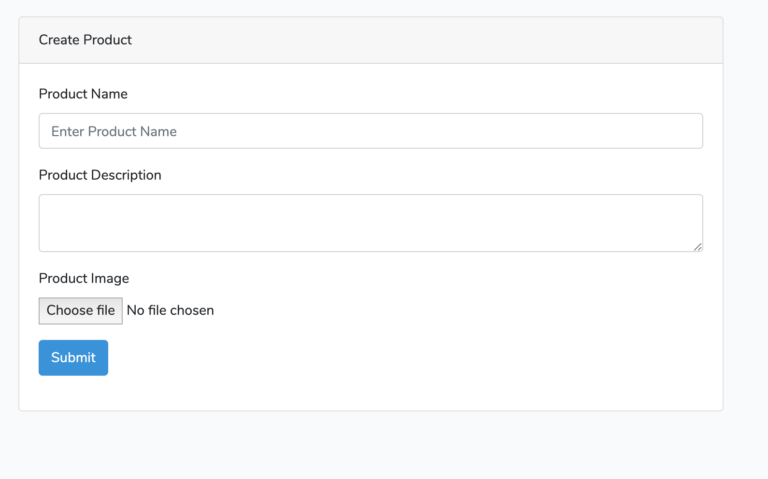 Trong phần chuẩn bị, mình cũng đã tạo 1 giao diện đơn giản để có thể nhập các thông tin và tạo mới một sản phẩm. Các bạn có thể tham khảo: