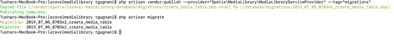 php artisan vendor:publish --provider="Spatie\MediaLibrary\MediaLibraryServiceProvider" --tag="migrations"