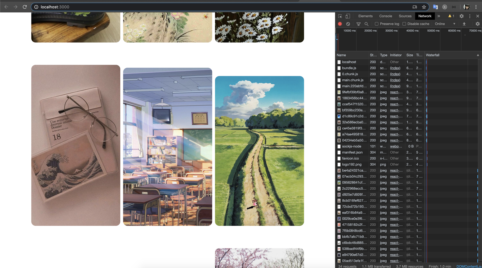 Và sau khi mình scroll xuống, số lượng ảnh được load thay đổi: