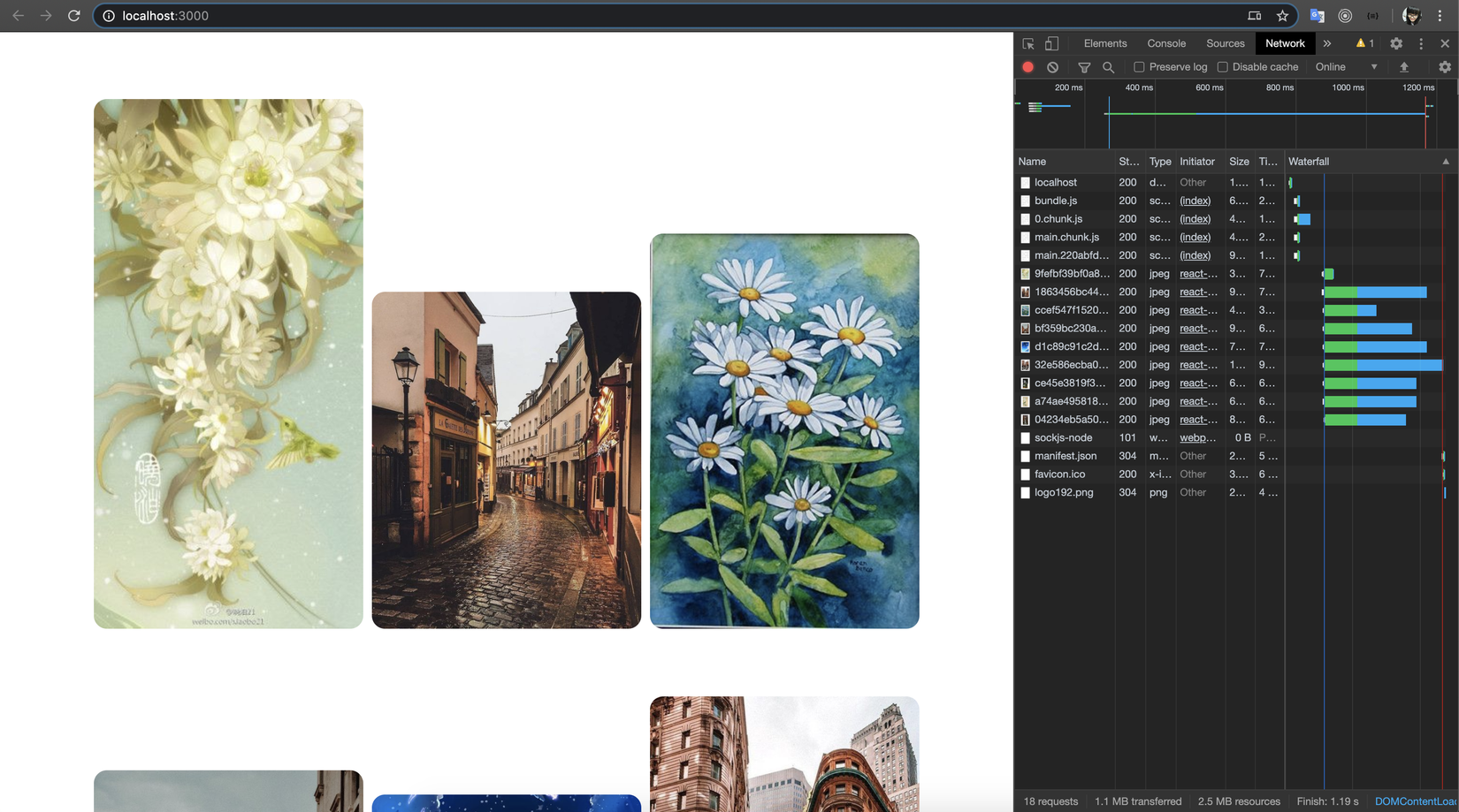 Hãy chú ý số lượng ảnh được load.