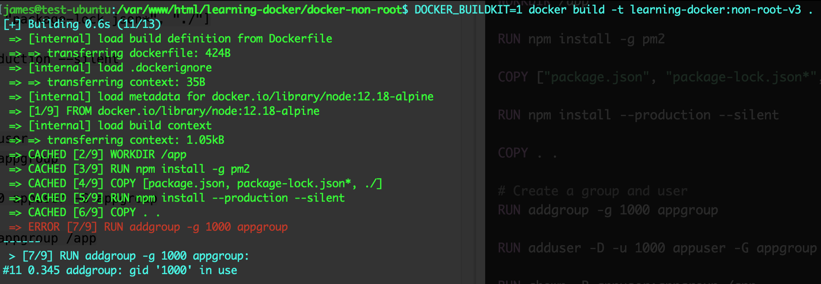rootvì ta cài global, nên luôn phải đặt trướcUSER node - Ngay phía trên command