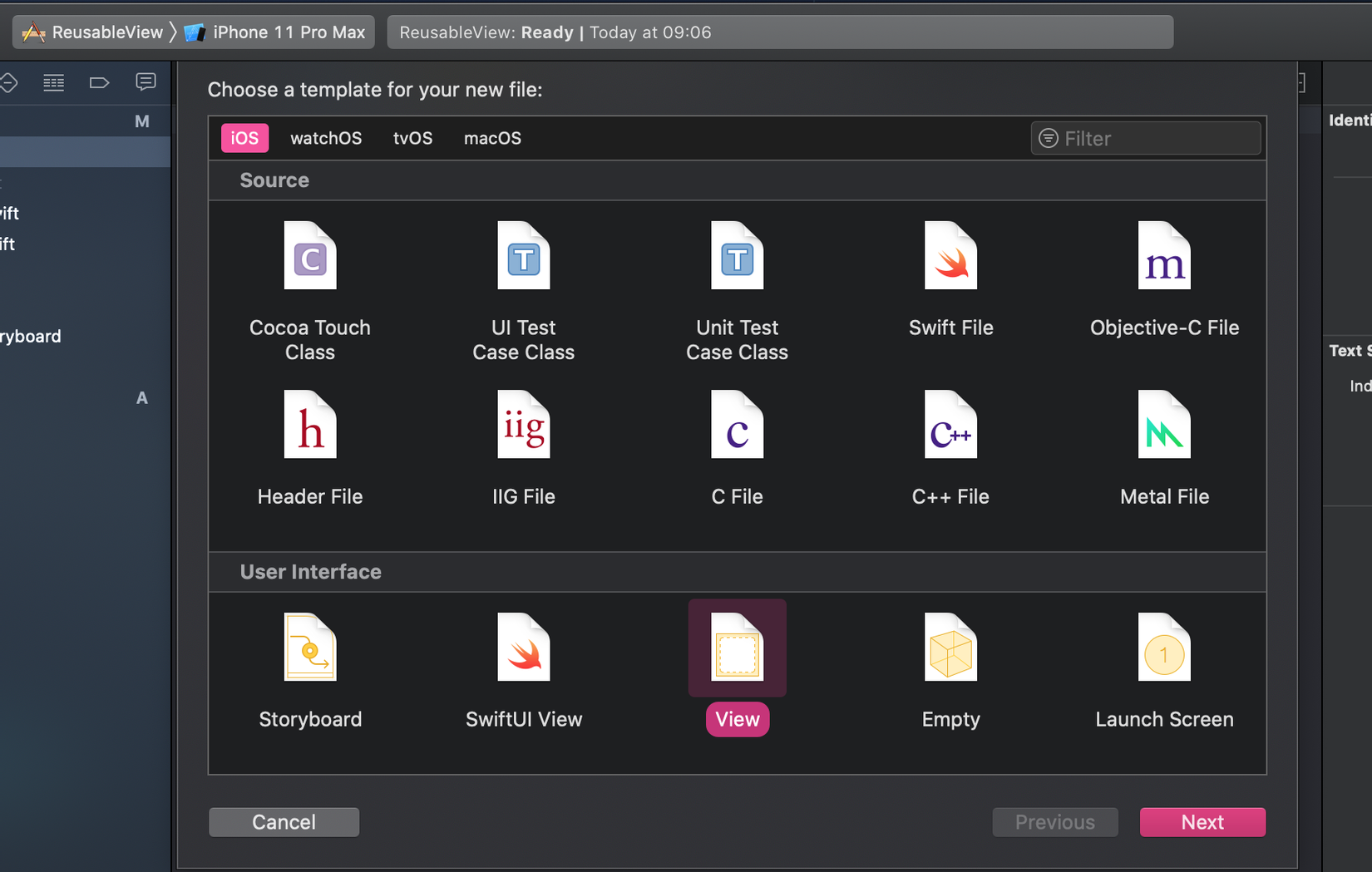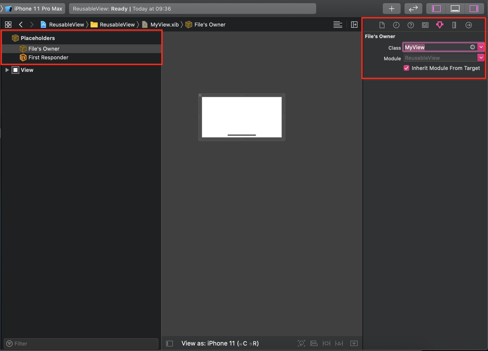 Bây giờ đều chúng ta cần làm là sử dụng reusable view này bằng cách điền loại class trong file xib mà chúng ta muốn dùng là xong