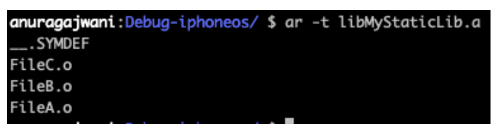 Lặp lại quá trình trên nhưng link app tới static library. Static library chứa code giống với dynamic framework ở ví dụ trên
