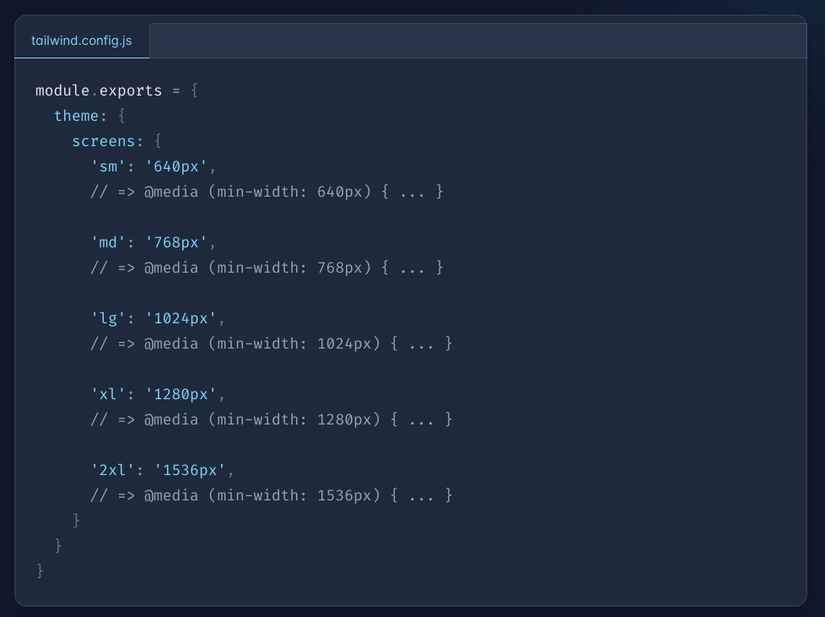 Responsive design : khi đã config breakpoint trong file cấu hình các điều sau đây là tương đương