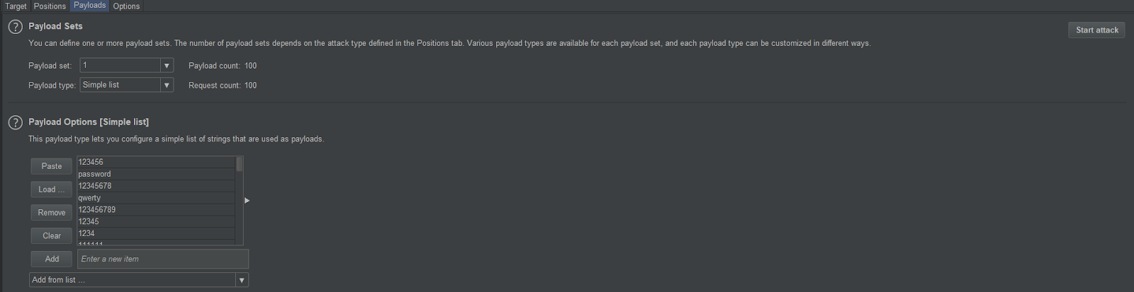Burpsuite không phải là 1 công cụ chuyên dụng để tấn công brute-force, tuy nhiên bạn hoàn toàn có thể tùy chỉnh đầu vào bộ mật khẩu để hướng tới 1 cuộc tấn công brute-force tùy ý.