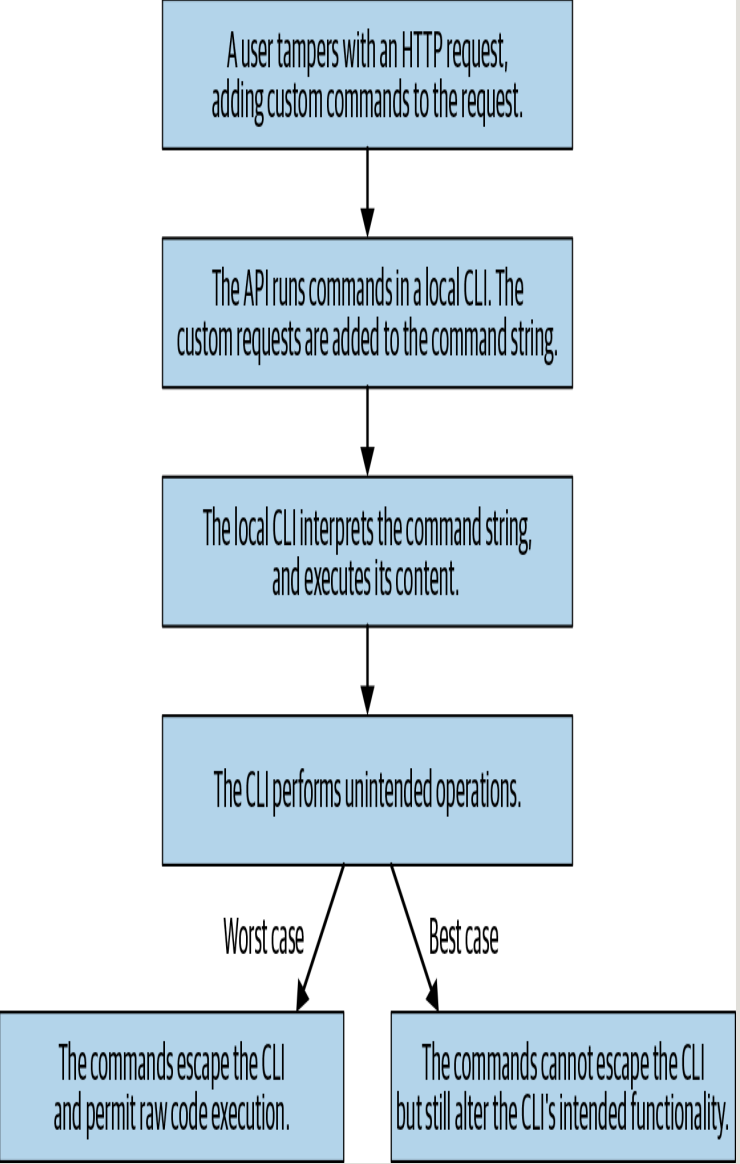 Trong quá trình thực thi mã, một đầu vào được sanitized đúng cách ở đây có thể dẫn đến các lệnh bổ sung được thực thi đối với hệ điều hành chủ — do đó có tên là “command injection”.