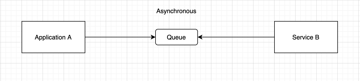 Trong thực tế, đặc biệt là hệ thống Microservice, người ta hay sử dụng Message Queue để liên hệ với nhau một cách bất đồng bộ. Service A gửi message tới Message queue và thế là xong việc, không cần phải đợi Service B trả lời ngay lập tức, sau đó Service B pull message từ Queue về và xử lý.