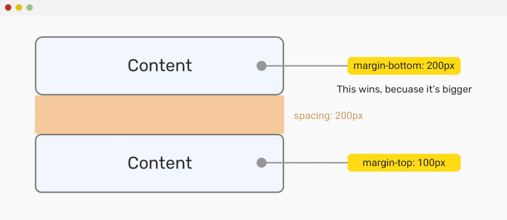 Hiểu đơn giản là margin collapse xảy ra khi chúng ta có 2 phần tử cạnh nhau và có spacing được định nghĩa bằng margin. Khi đó, khoảng cách sẽ không được cộng dồn mà sẽ lấy phần tử có margin lớn hơn.