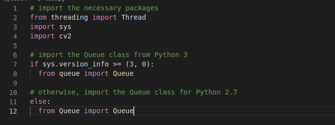 Vì phương thức .read của cv2.VideoCapture là một blocking I/O operation, chúng ta có thể tăng tốc đáng kể chỉ bằng cách tạo một luồng riêng biệt từ tập lệnh Python chính, cái mà chịu trách nhiệm đọc các frame từ file video và duy trì hàng đợi queue.