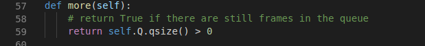 Hàm more sẽ trả về True nếu vẫn còn nhiều frame trong hàng đợi (và False nếu ngược lại)