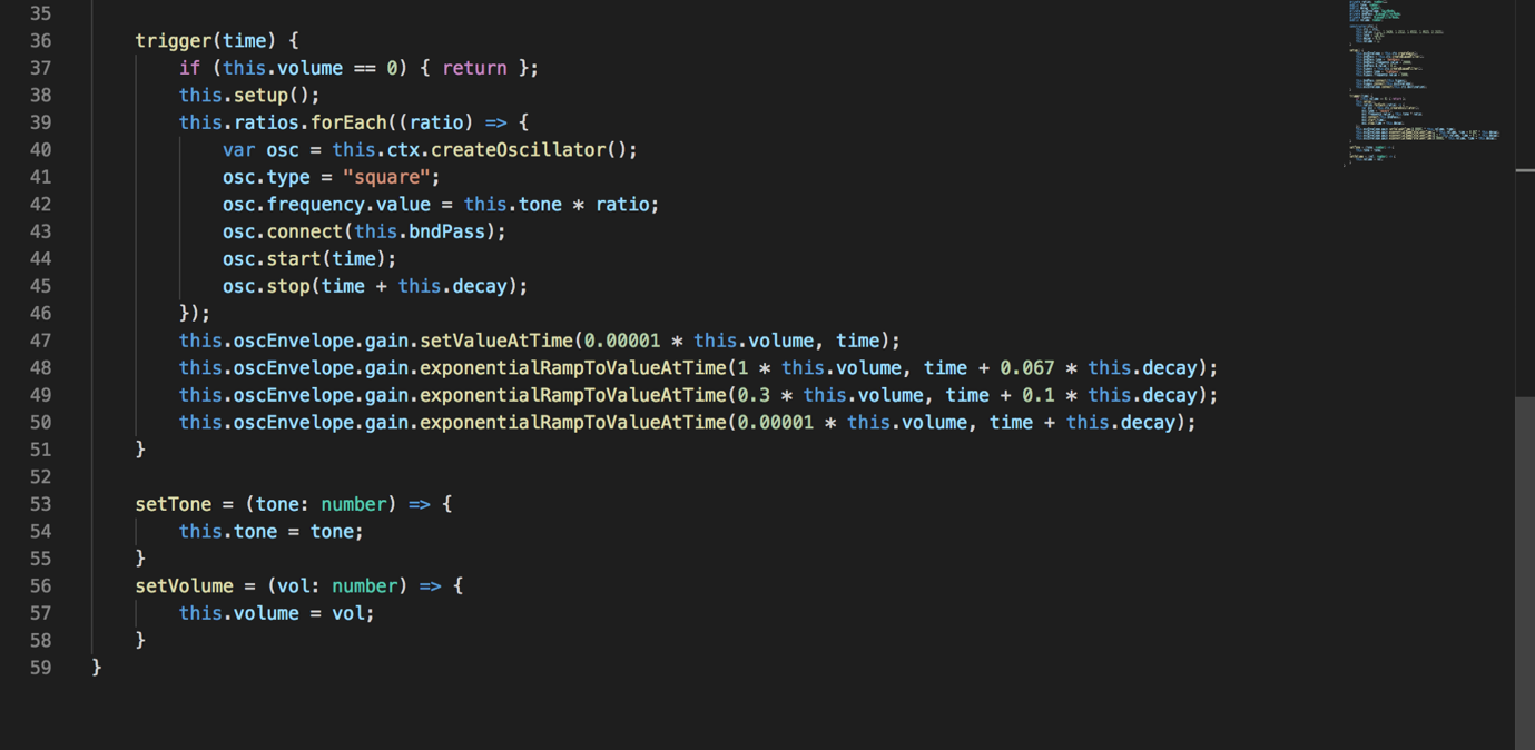 Phần này là cái phần tính toán tần số đau đầu nên mình xin skip vì rất may Tone.js cung cấp cho chúng ta API và chúng ta chỉ cần viết sau: