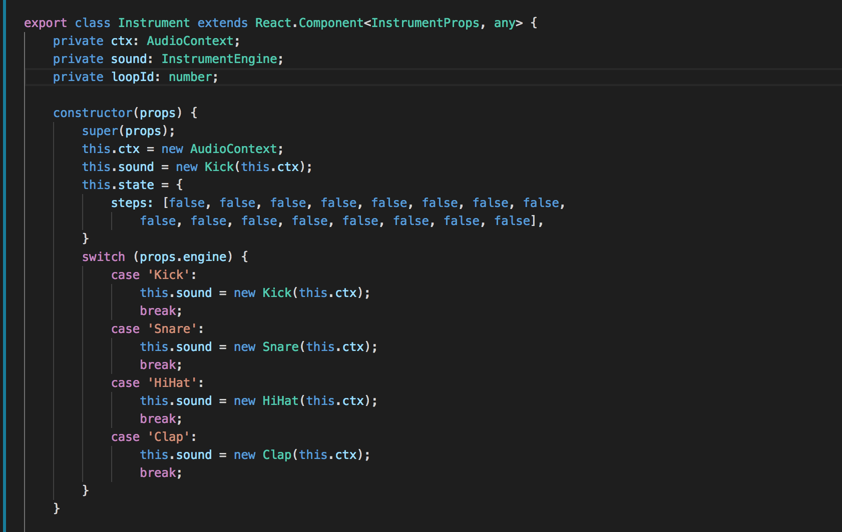 IntrumentHack sẽ lựa chọn loại nhạc cụ để chơi và tuyền vào steps. Các loại khác sẽ là null
