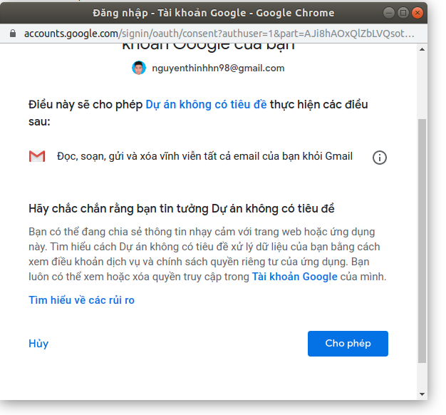 Đọc qua chắc các bạn cũng hiểu đoạn code này rồi, code này sẽ sử dụng chính email mà bạn đăng nhập vào app để gửi mail cho mailTo
