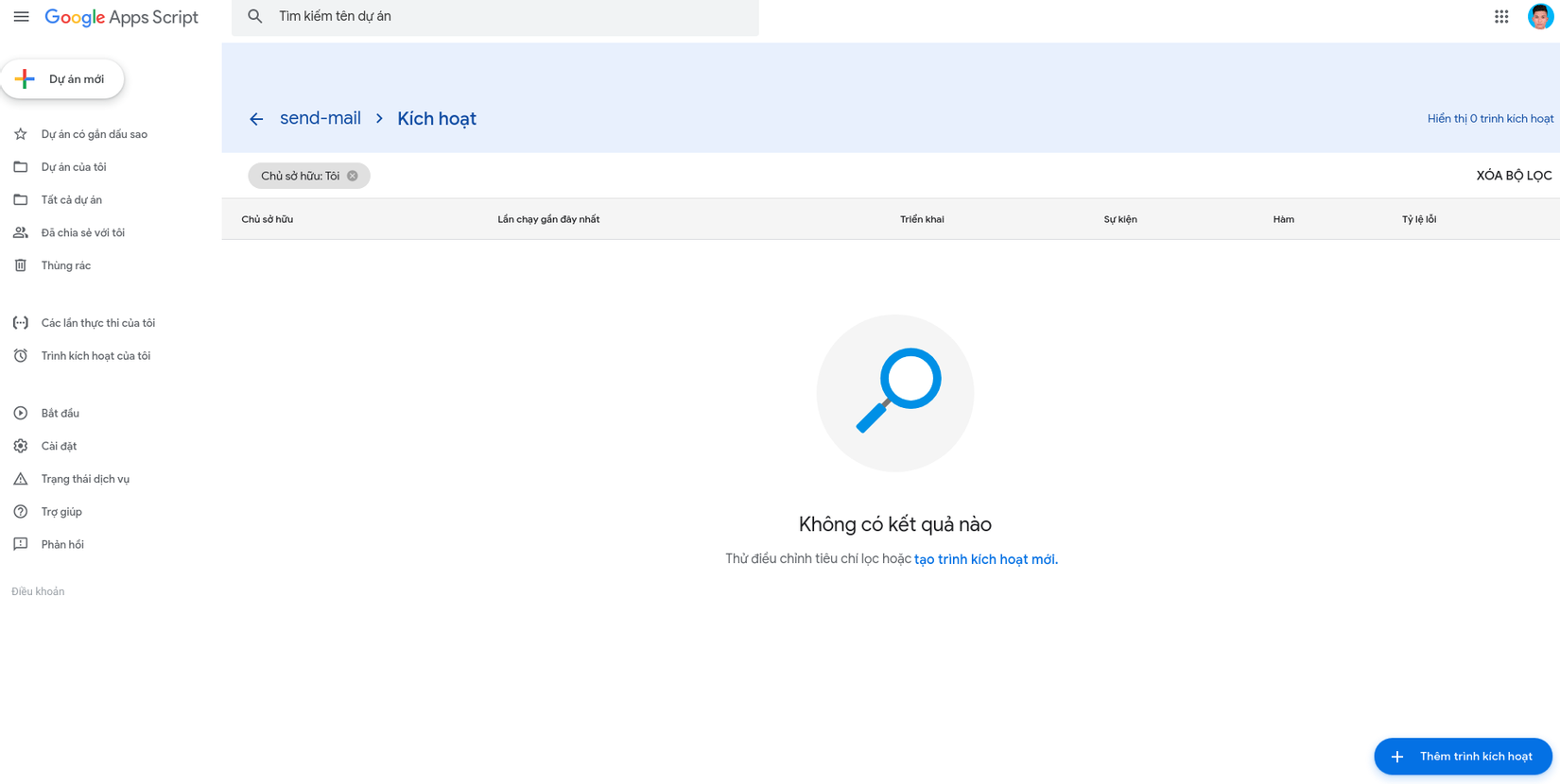 Chọn mục Thêm trình kích hoạt ở góc dưới bên phải màn hình.