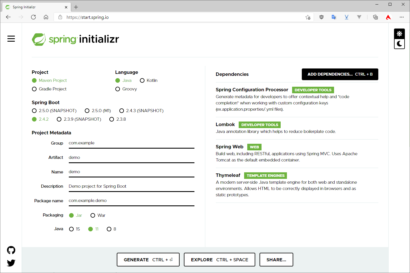 Trong phần này, mình khuyến khích các bạn chọn gồm: Spring Web, Lombok, Thymeleaf.