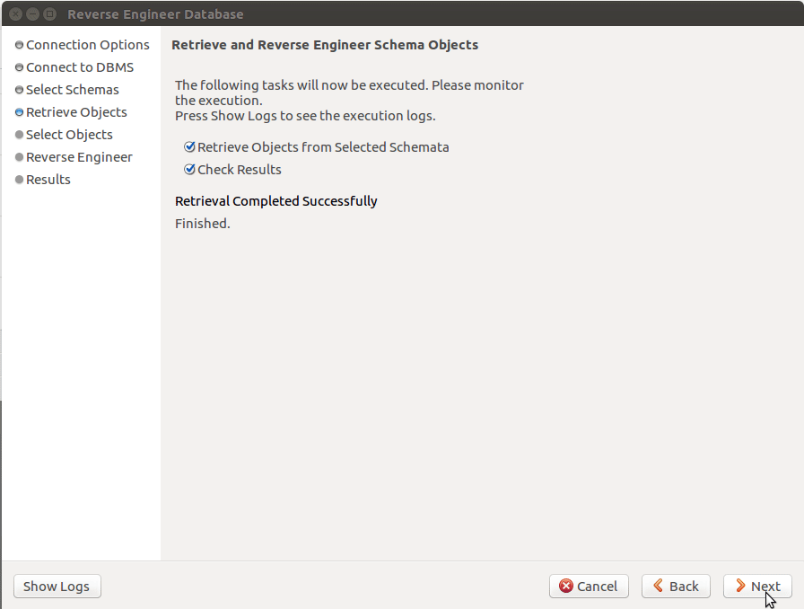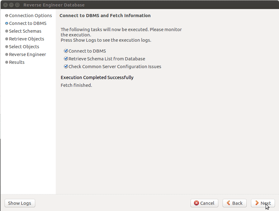 4. Sau khi kết nối thành công (connection to DBMS), tiếp chọn chọn Next.