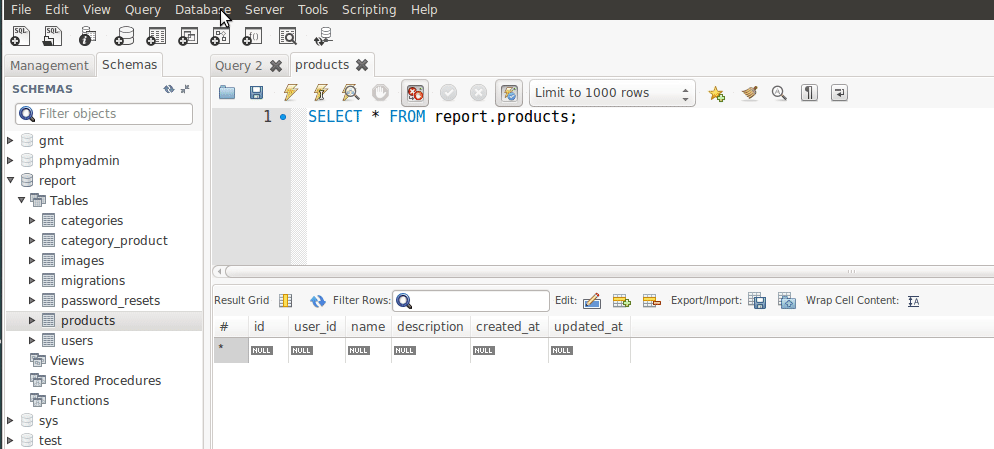 Tables - migrations, users, passwordresets, products, categories, images, categoryproduct