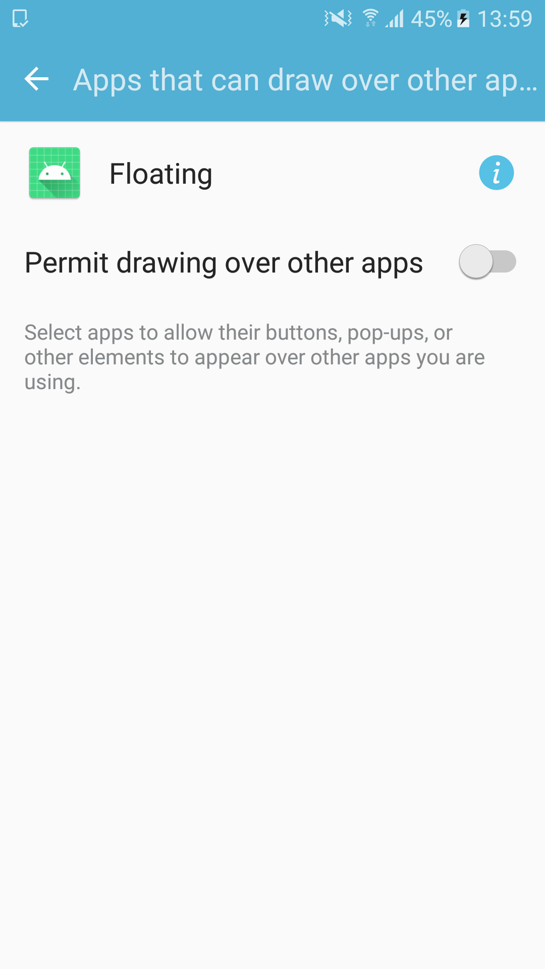 Lúc này, khi chạy ứng dụng, app mở lên sẽ chuyển sang màn hình setting, để bạn có thể cho phép ứng dụng của mình được hiển thị đè lên các ứng dụng khác như sau :