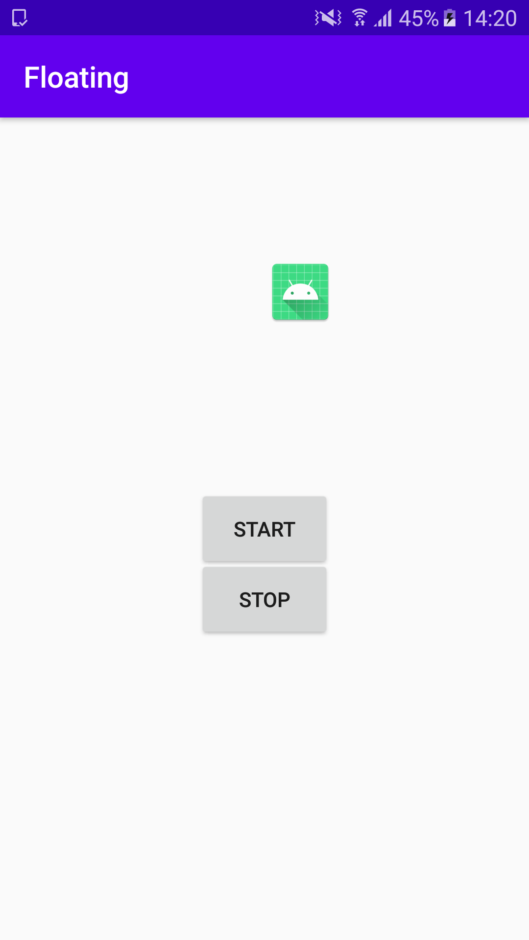 Chạy ứng dụng, khi bạn click vào START, sẽ xuất hiện 1 view chính là icon của app. Bạn có thể kéo thả nó toàn màn hình, ngay cả khi thoát app như sau :