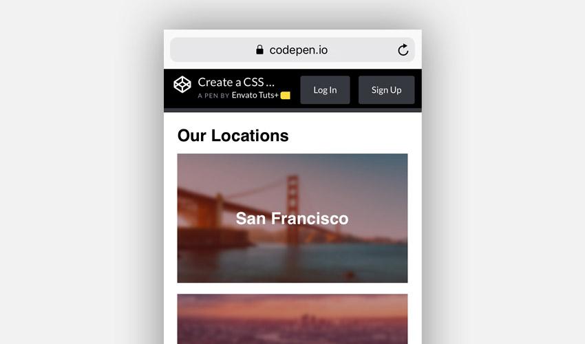 Khắc phục các cạnh bị mờ hơi phức tạp một chút. Để bắt đầu, chúng ta giãn kích thước hình ảnh để làm cho nó lớn hơn một chút, sau đó chúng ta thiết lập overflow: hidden; trên container của hình ảnh (.location-listing) để khi hình ảnh lớn hơn bị mờ các cạnh của nó được cắt một cách hiệu quả. Dưới đây là các thuộc tính đã hoàn thành cho hai phần tử theo yêu cầu: