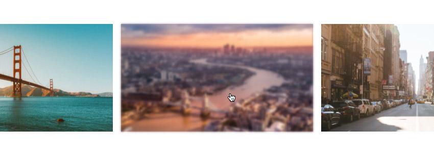 Chúng ta đã tạo ra một hiệu ứng di chuột trông rất tuyệt vời, nhưng hãy tiến một bước xa hơn nữa. Hãy thêm một bộ lọc mờ cho hình ảnh. Chúng ta sẽ bắt đầu bằng cách thiết lập bộ lọc mờ ở trạng thái normal, để cung cấp cho chúng ta thứ gì đó để transition từ đó. Sau đó, chúng ta sẽ làm mờ mọi thứ 2px cho trạng thái hover (thiết lập con số này tuỳ ý bạn muốn, nhưng tôi nghĩ 2px mang lại cho chúng ta một hình ảnh tuyệt vời):