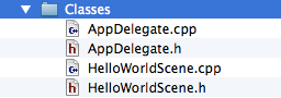 Thư mục Resources là kho lưu trữ chung cho tất cả các tài nguyên khác nhau mà trò chơi của bạn sẽ sử dụng, như đồ họa, âm thanh, v.v. Thư mục Classes là thư mục quan trọng nhất trong tất cả, đây là nơi chứa code của chúng ta. Bên trong thư mục đó sẽ giống như này: