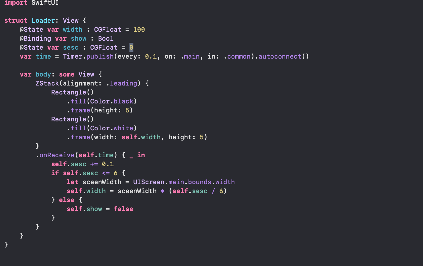 Và ở trong này ta sẽ có thằng Timer thì nó sẽ tăng cái timer lên 0.1 mỗi lần và khi đến thời gian giới hạn (ở đây mình cho nó là 6s) thì nó sẽ binding cái biến show ở thằng cha lại thành false . Nó sẽ ẩn đi cái view hiển thị ảnh lại.