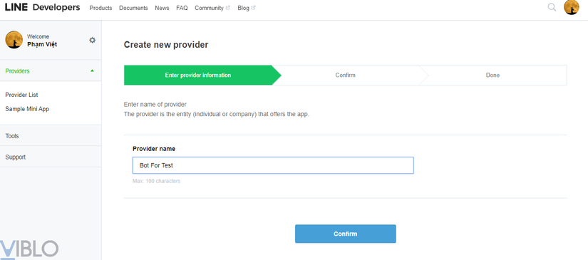 - Đăng nhập Developer LINE và lựa chọn "Add new provider"