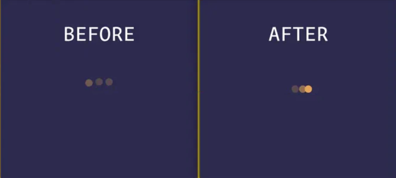 Tôi cũng đã thêm một chút khoảng cách giữa các vòng tròn nhưng phần thú vị nhất ở đây là thuộc tính animation. Tôi đang sử dụng một animation keyframe được gọi là bouncingLoader chạy một lần trong 0,6 giây và lặp đi lặp lại một cách vô thức. Hãy nói nhiều hơn về điều đó và các thuộc tính animation delay bên dưới.