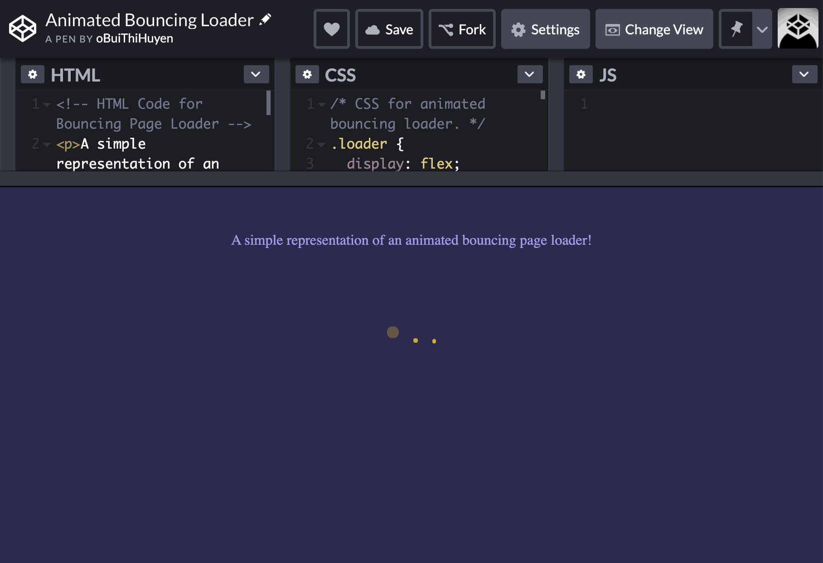 Đây là code hoàn chỉnh của animated bouncing page loader này: