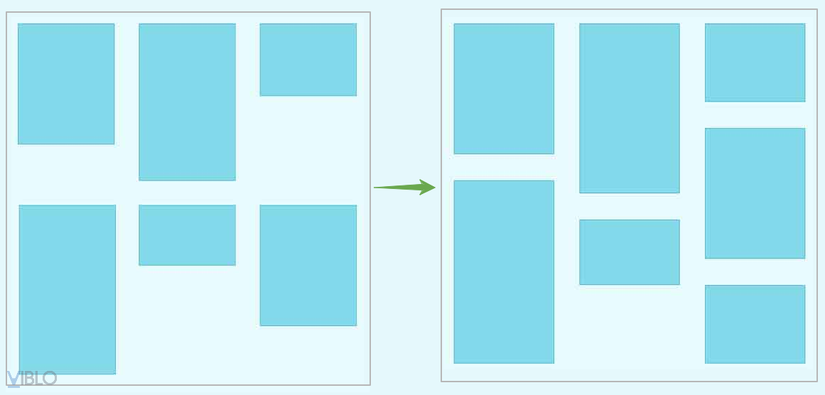 Giải pháp đơn giản là margin top âm cho các items cùng column để lấp đi các khoảng trống hiện tại. Và công thức để margin top chính xác sẽ xoay quanh thuộc tính getBoundingClientRect()