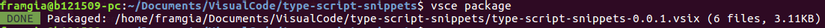 Ok giờ chúng ta chỉ cần chạy lệnh để tạo ra tệp extension có đuôi .vsix để chúng ta cài đặt vào Visual Studio Code.