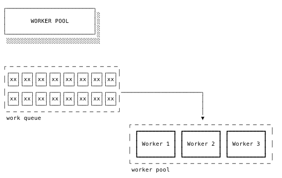 Các bạn có thể dễ dàng tự xây dựng một worker pool bằng những gì đơn giản nhất từ Golang mà không cần import thêm bất gì package nào từ bên ngoài. Hiện tại có rất nhiều package trên Github để giúp ta giải quyết vấn đề này nhưng thật sự nó quá nhiều và khó mà lọc ra package phù hợp mình cần. Nên trong lúc research thì mình thấy ví dụ từ bài viết https://brandur.org/go-worker-pool là đơn giản nhất, cơ bản nhất để hiểu và giải quyết worker pool. Hi vọng sẽ giúp ích được cho các bạn chút gì đó. Các bạn vẫn nên đọc lại link gốc nếu có gì không rõ do mình diễn giải lại.